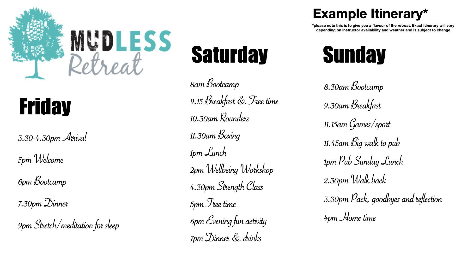 We are more than a little excited to announce our first ever Mudless Retreat. This will be a chance for you to escape to the countryside but with only a 90minute drive from Coventry you can quickly relax and unwind. You'll enjoy freshly cooked food, workout classes, country walks, runs, workshops and chill time. We want to create you the ultimate escape that offers both relaxation and access to exercise, fun and growth. You can join in as much or as little of the classes as you like and also enjoy en suite accomodation in with countryside views and tea and coffee making facilities. We have found a beautiful converted Cotswold Barn with really high standard ensuite rooms and great communal spaces to give us the perfect weekend. CLICK HERE